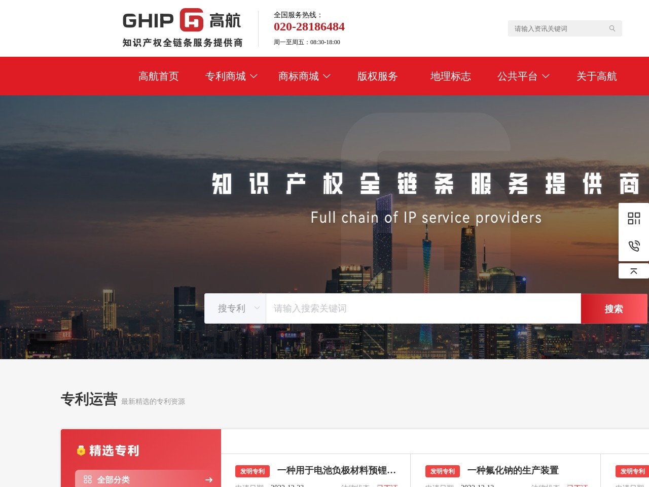 一站式知识产权交易服务,专利转让平台;高航网是全球领先的知识产权网站和知识产权交易平台,专注为客户提供知识产权设计开发、转让交易和授权许可的综合解决方案,涵盖专利、商标、版权、法律等专业领域。秉承“创新、务实、高效、稳健”的经营理念,以原创科技成果为驱动力,以知识产权运营为助推器,引领以知识产权为核心竞争力的商业新时代!