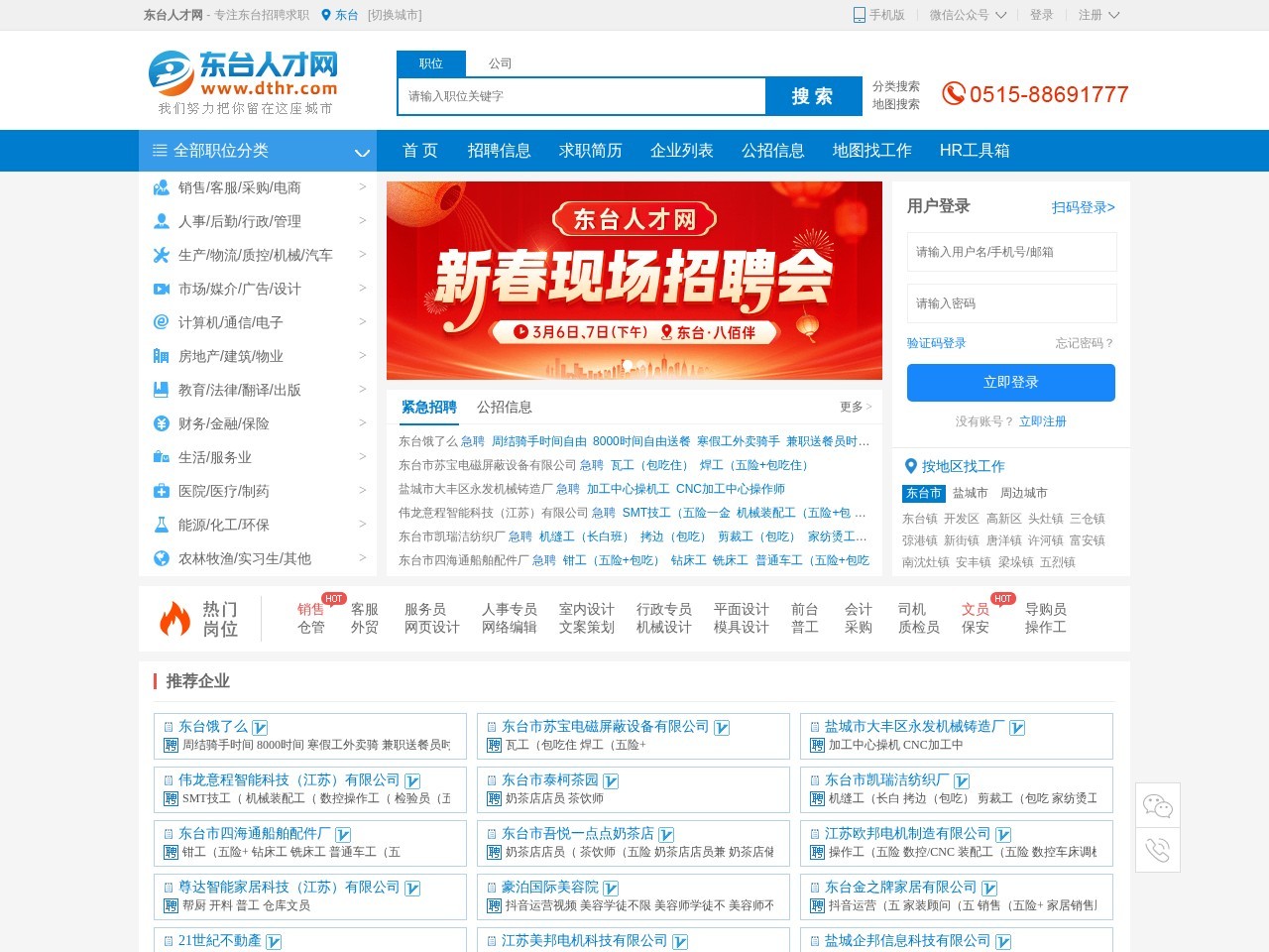 东台人才网-东台地区正规的人才招聘网站,免费提供东台招聘信息、求职信息及东台招聘会信息。打造专业的网上东台人才市场,东台企业招聘、人才求职平台。