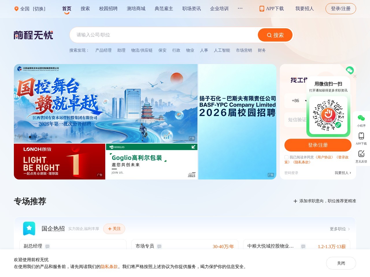 前程无忧人才网面向全国,提供2015最新最全最准确的招聘网站信息,为企业和求职者提供人才招聘、求职、找工作、培训等在内的全方位的人力资源服务,更多求职找工作信息尽在前程无忧!