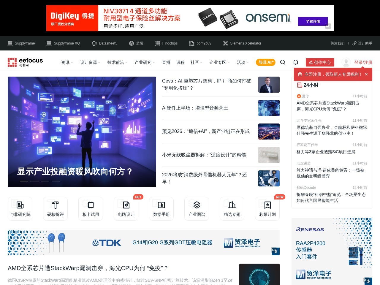 与非网(EEFOCUS)电子产业社区平台为中国电子行业首家采用强大技术平台,由专业的电子技术编辑服务,为全球3000家知名半导体厂家及电子技术系统厂商提供技术信息发布、厂商网站、技术社区建设服务,并以电子术语词典,集成电路数据手册查询,电子产品新闻访谈资讯信息以及互动技术交流社区为上百万电子技术工程师以及高校师生提供最完整的电子技术信息查询和交流服务。