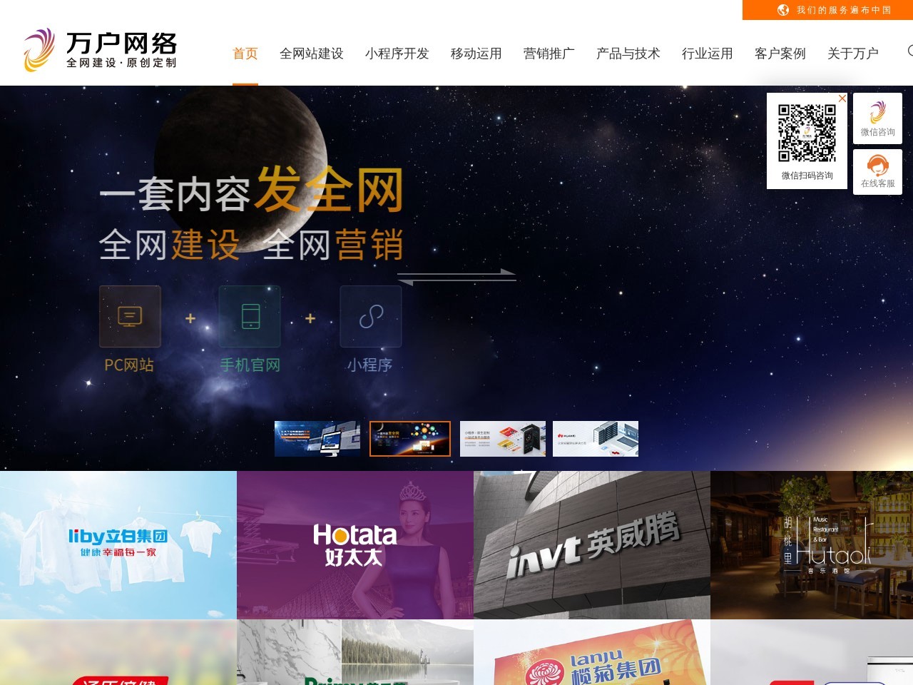 万户网络是中国首批互联网公司,网站建设领导者,移动互联网领军企业,顶级网络营销服务商,服务几万家大中企业。提供网站设计,上海网站建设,上海网站设计。