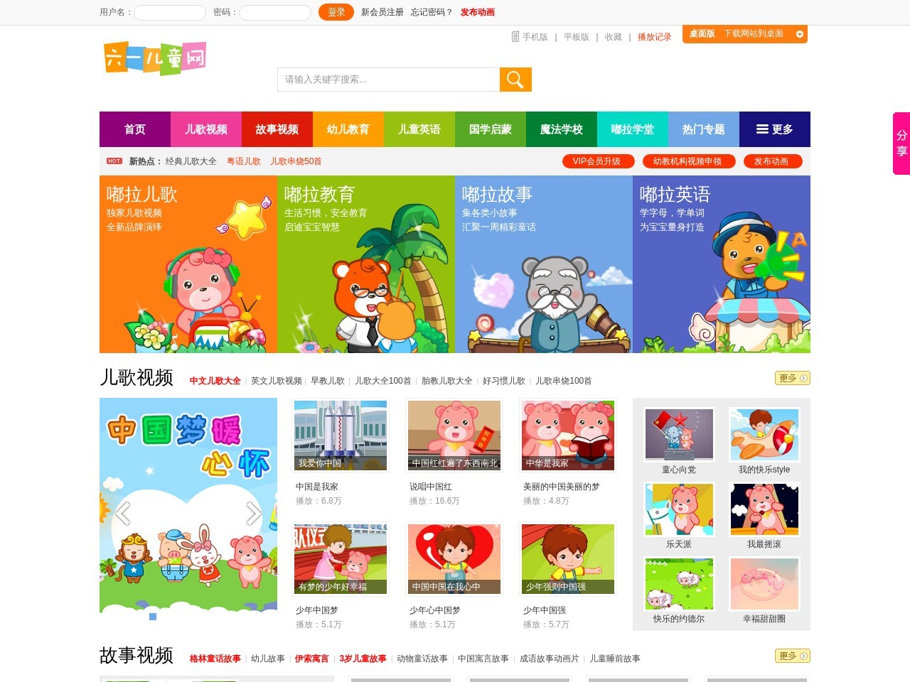 六一儿童网是专注于为中国儿童提供服务的绿色门户网站。海量原创儿歌,儿歌视频,儿童歌曲MP3,儿童故事,儿童游戏,儿童舞蹈等非常精彩的内容,为广大的学龄前儿童打造一片纯净的网络天空!