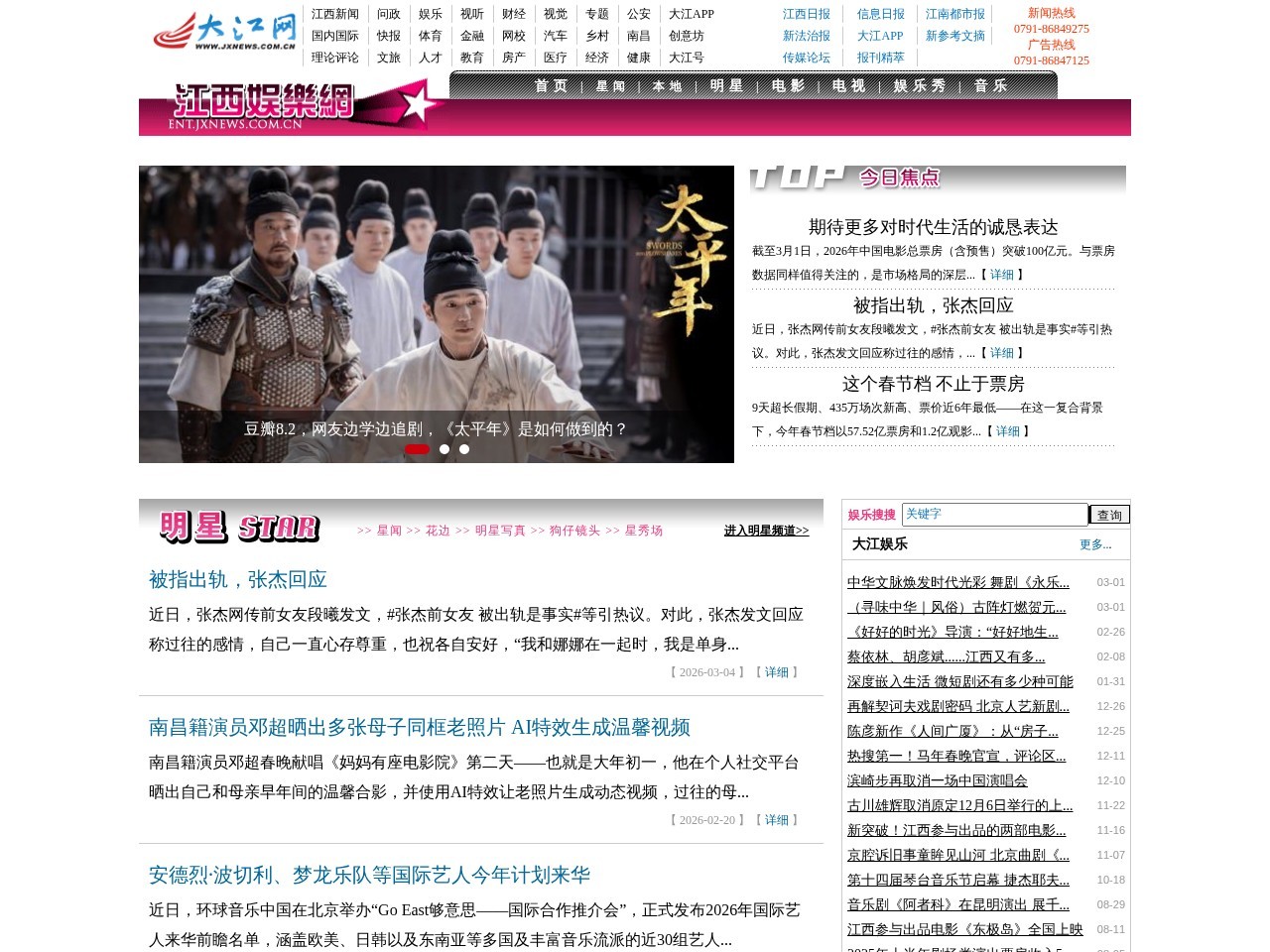 江西娱乐网是江西最全面的娱乐信息综合站点,每天为网民提供大量丰富的娱乐资讯,包括明星、电影、电视、音乐、演出等资讯以及相关实用信息。