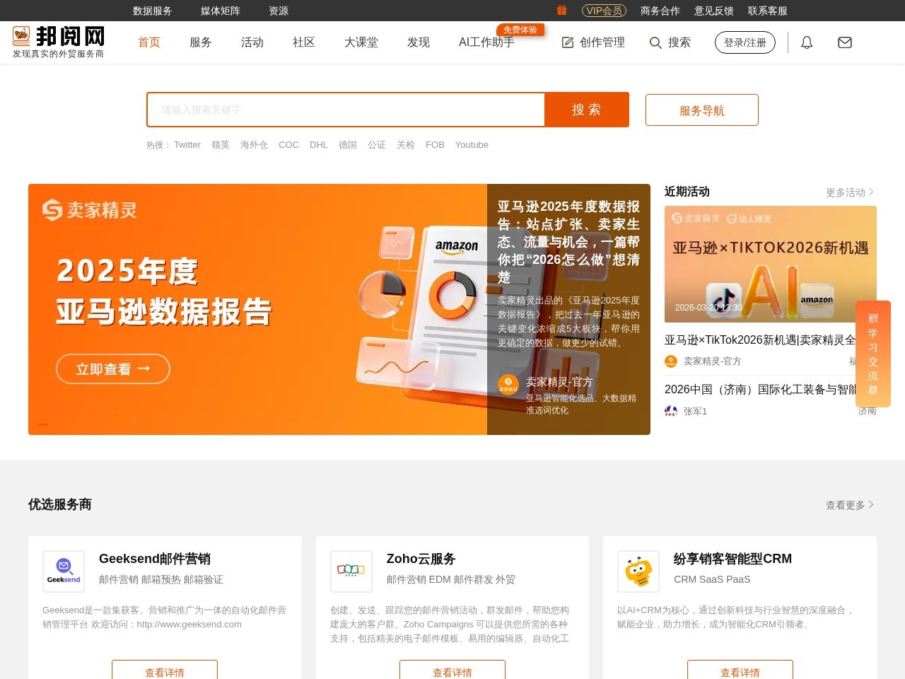 邦阅网-发现真实的外贸服务商,致力于通过知识服务为外贸人寻找真实可信的服务商,通过知识分享,案例分析,营销技巧等为外贸人提供全方位的知识推送服务,让外贸用户在知识获取的同时能了解到服务商的品牌和提供的服务。