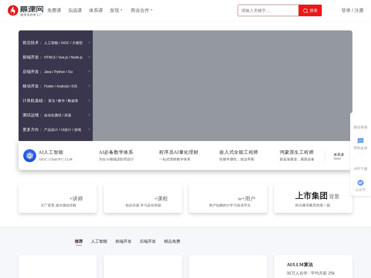慕课网(IMOOC)是IT技能学习平台。慕课网(IMOOC)课程涉及JAVA、前端、Python、大数据等60类主流技术语言,覆盖了面试就业、职业成长、自我提升等需求场景,帮助用户实现从技能提升到岗位提升的能力闭环。