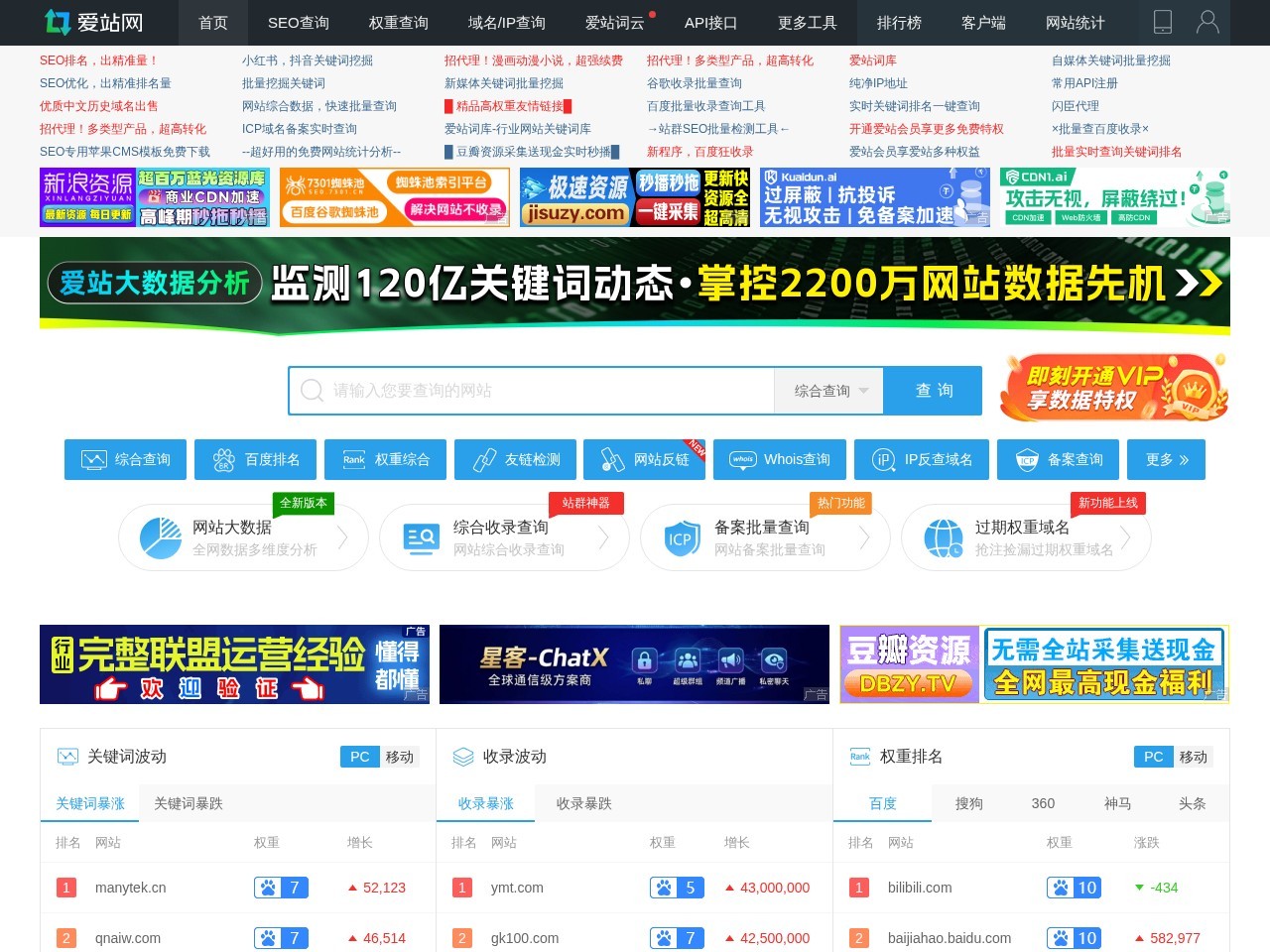 爱站网站长工具提供网站收录查询和站长查询以及百度权重值查询等多个站长工具,免费查询各种工具,包括有关键词排名查询,百度收录查询等。