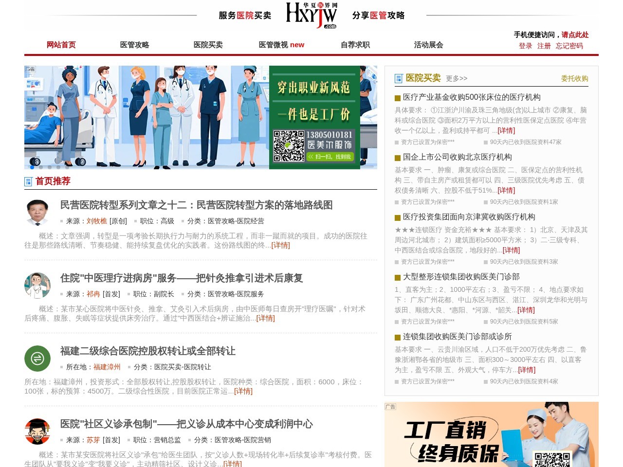 华夏医界网(原海峡医界网),为中国民营医院提供全面、详细的医疗信息服务。包括医疗资讯,民营医院营销,民营医院管理,医疗广告,医疗人才,医院合作转让,医院营销培训,医院管理培训